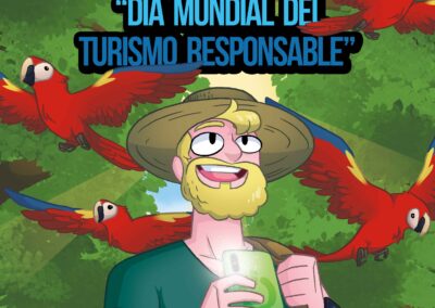 Cuando empecé a realizar las primeras efemérides, intenté con un diseño «realista y genérico», pero utilizando fondos y elementos coloridos que siempre agrego a mis diseños. A partir de mayo encontré un estilo formal que me gustó y quise implementar en todas las ediciones futuras. Esta constaba de ilustraciones completas con personajes y fondos, pero colocando los textos con una tipografía que utiliza los colores institucionales de la universidad.